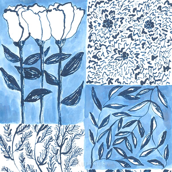 のびやかにインクで描いた植物がいっぱいのポスターです。